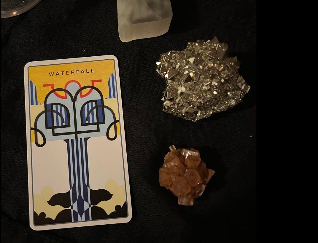 Just as I’m digesting that lesson, my very witchy friend starts lining the table with all of her tokens, crystals, and candles. It’s an impressive set-up.