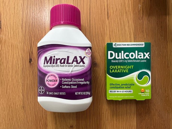 I opted for a PEG (polyethylene glycol) bowel prep kit — the Miralax + Dulcolax combo.